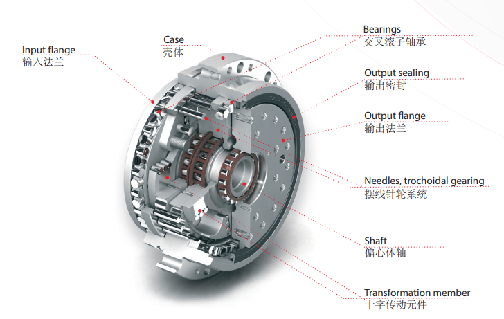 擺線減速機(jī)傳動(dòng)的主要零部件:輸入軸,雙偏心套,轉(zhuǎn)臂軸承,擺線...