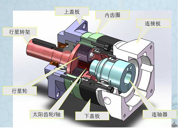 行星減速機(jī)主要傳動(dòng)結(jié)構(gòu)為:行星輪、太陽(yáng)輪、外齒圈。齒輪作為行...