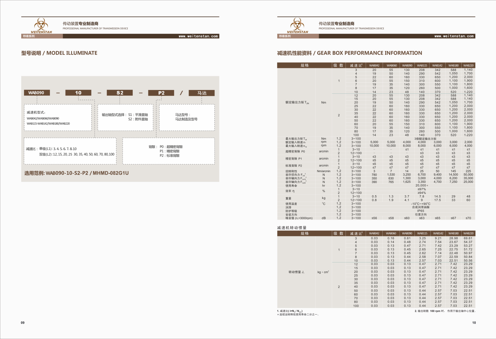 WAB系列機器人專用RV減速機。 齒輪材料采用優(yōu)質合金鋼,經(jīng)碳-氮共滲處理,從而獲得最佳的耐磨性和耐沖擊韌性。 利用ANSYS技術對齒輪強度進行有限元分析,同時對齒面形及導程修整,以減低齒輪嚙合的沖擊和噪音,增加齒輪系的使用壽命。 輸出行星架采用一體式(雙支撐)的結構設計,前后軸承大跨距分布箱體內(nèi),形成穩(wěn)定的一體式結構,以確保較高的扭轉剛性和精度。 齒圈與輸出殼體采用一體化設計,采用優(yōu)質鋼材,經(jīng)熱鍛成形,從而獲得較高的材料密度。一體化設計能確保所有幾何尺寸一次性加工完成,與其它內(nèi)嵌式、夾裝式等結構相比具有更高的精度和強度。 輸入軸與鎖緊裝置采用一體化設計,雙螺栓對稱分布,達到動平衡的同時,通過雙螺栓的強力鎖死,有效防止電動軸傳動打滑,實現(xiàn)高精度零背隙的動力傳送。