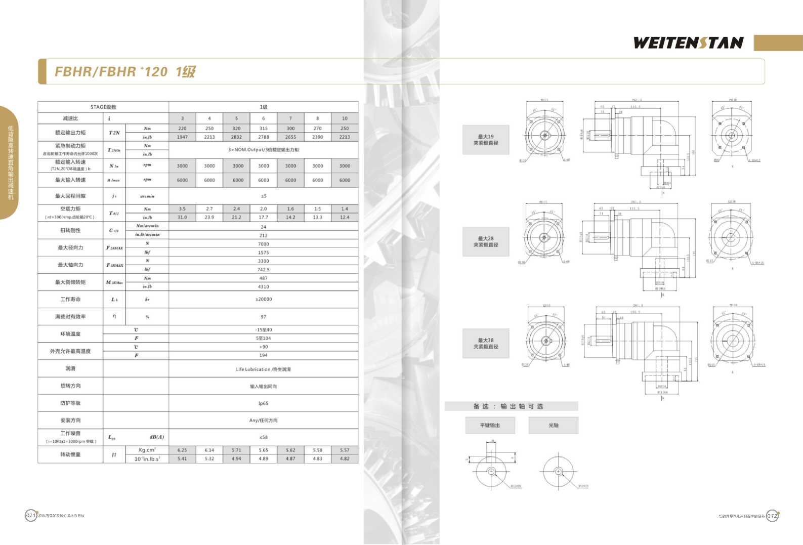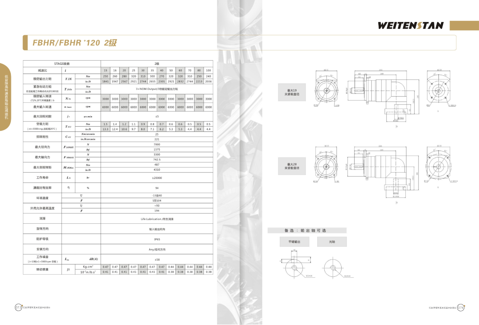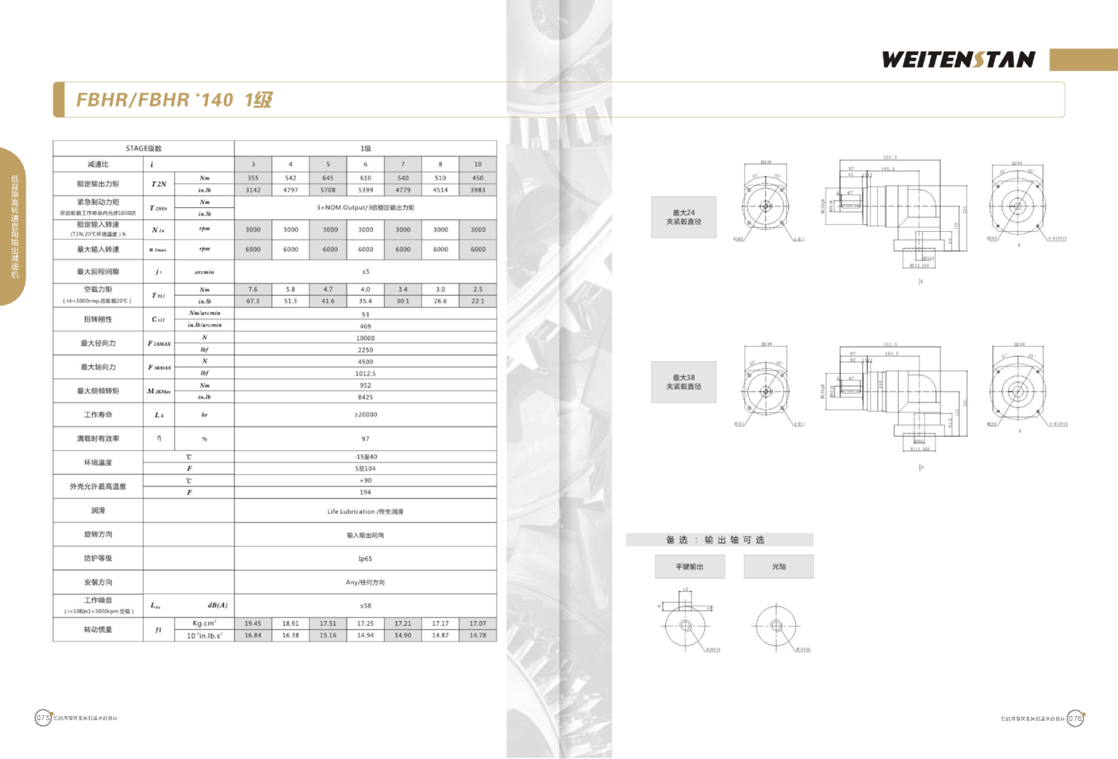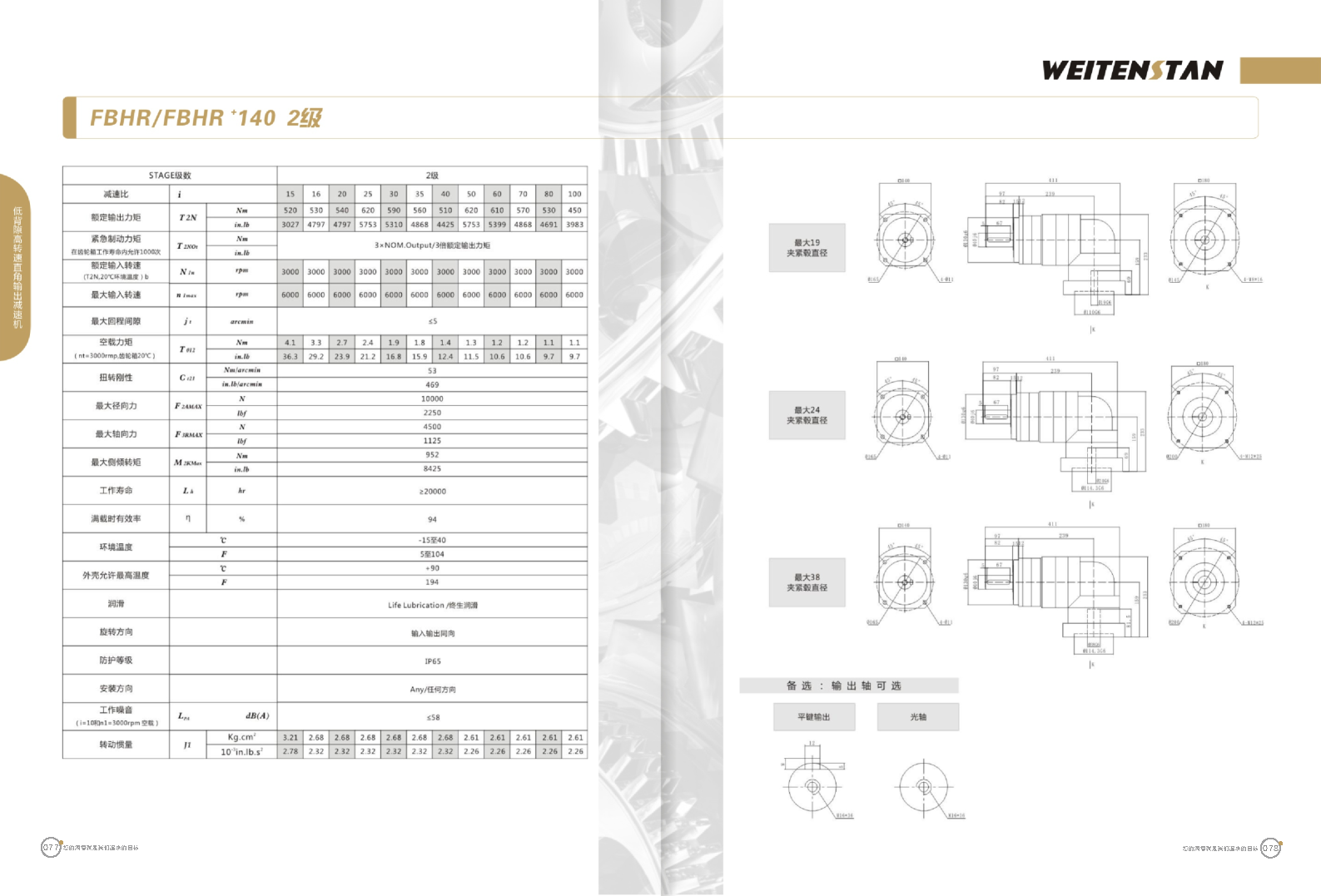 FBHR系列低背隙高轉速直角輸出減速機。 FBHR產品系列的轉角式減速機,標準規格的轉角輸出適用于高精度高轉速的連續工作。 極高的功率密度。盡管以往系列性能極為出色,但我們成功的將扭矩提高了近40%。不斷提高極限值,典型威騰斯坦產品! 電機安裝簡易。電機可安全簡易的一步安裝,另外您也可以選擇威騰斯坦享有的專利權的,帶有長度補償軸的安裝。 任意位置安裝。不管你在哪個位置安裝,你的齒輪箱始終有相同的潤滑油/潤滑脂量。安裝靈活、齒輪箱能夠垂直、水平、與從動軸一起向上或向下安裝。 極高的定位精度。根據用戶需求,你可獲得回程間隙小于角分的高型行星齒輪箱。這也大大提高了你應用上的定位精度。 通過齒輪嚙合,運轉平穩。相比直齒嚙合齒輪箱,本公司的斜齒嚙合齒輪箱運轉噪音減低了50dB-A,你深知50dB-A所創造的價值遠遠高于70dB-A。此外還有:不再感動振動,運轉平穩到令人驚訝。 世界水平的預期壽命。原材料進行了優化,幾何形狀同樣進行了優化。